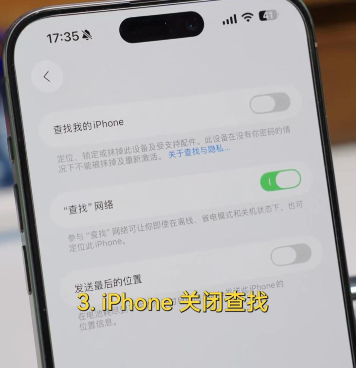 第三步,解开苹果的“电子手铐”——关闭查找功能。
