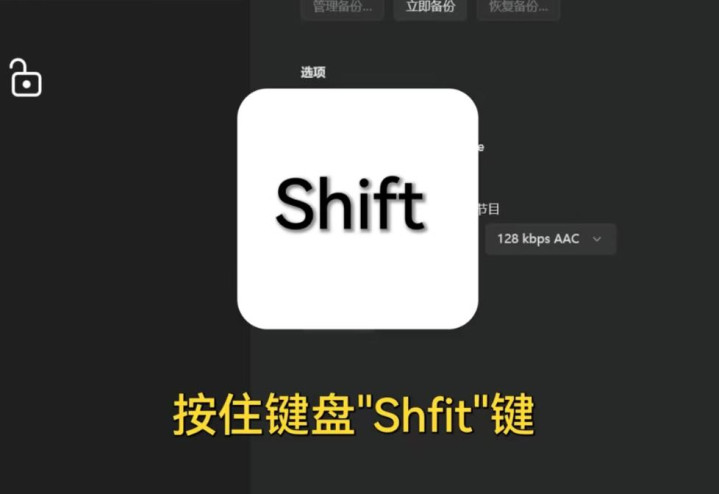 死死按住Shift键不放,同时用鼠标点击APP里的“恢复iPhone”按钮。