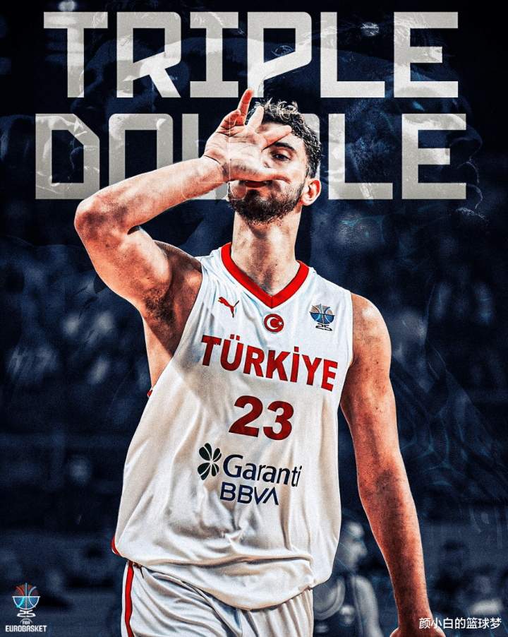 北京时间9月9日,男篮欧洲杯1/4决赛,土耳其以91-77击败波兰晋级四强,土耳其男篮创造76年纪录,队史第三次进入四强。帮助土耳其创造历史的男人就是火箭核心阿尔佩伦-申京,他拿到19+12+10的三双成为欧洲杯历史第六人,也是欧洲杯历史最年轻三双先生。